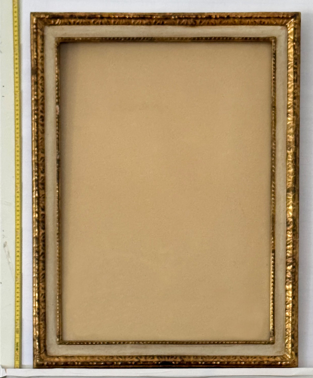 Der antike Bilderrahmen ist aus Holz mit dekorativer zweiteiliger Vergoldung.
