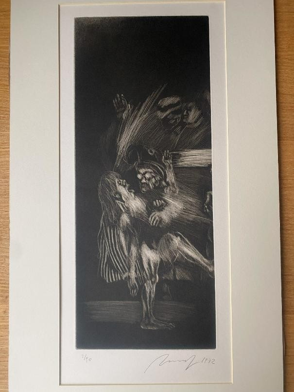 Bildrechte Barbara Weihs Radierung von Alfred Hrdlicka(oder Aquatinta auf Pergament) Blatt 3/90 50 x 20 mit Passepartou Ausrufpreis: 130,- Bildrechte Barbara Weihs "Fragment zur Studie IV von 'Rückkehr aus Fraunkreich und Reise nach innen'", 1972 Vermutlich aus einer Serie erworben Wien Galerie HilgerSchätzpreis: 280-400,- Euro Kiefer Buch- und Kunstauktion Feb. 2021 KatalogSeite1