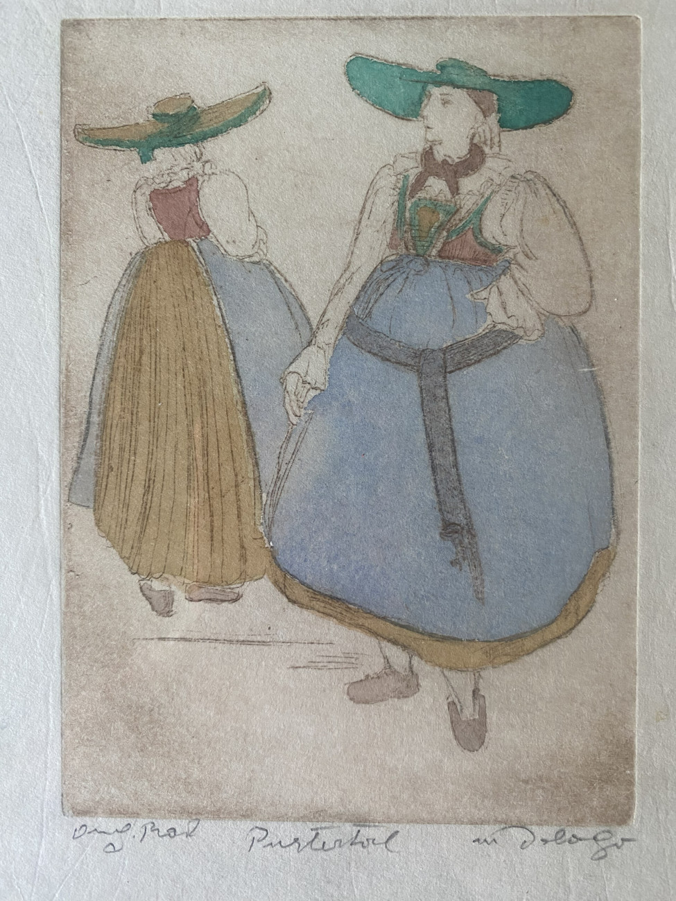 Original Radierung, handkoloriert von der Künstlerin Maria Delago, Südtiroler
